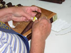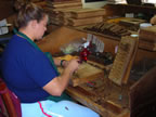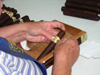 After El Titan De Bronze we went to The El Credito Cigar Factory, 1106 SW 8th St, Miami, 33130 - (305) 858-4162. This is the factory where the Miami La Gloria Cubana Cigars are rolled. This was a great factory and the people rolling and banding the cigars were very open to visitors and having pictures taken. They seemed to thrive on it. In fact they prompted a few of the pictures. The woman Banding the Maduro Coronas was so proud of her boxed sticks that she opened the box to get me to take a picture of the dress box.